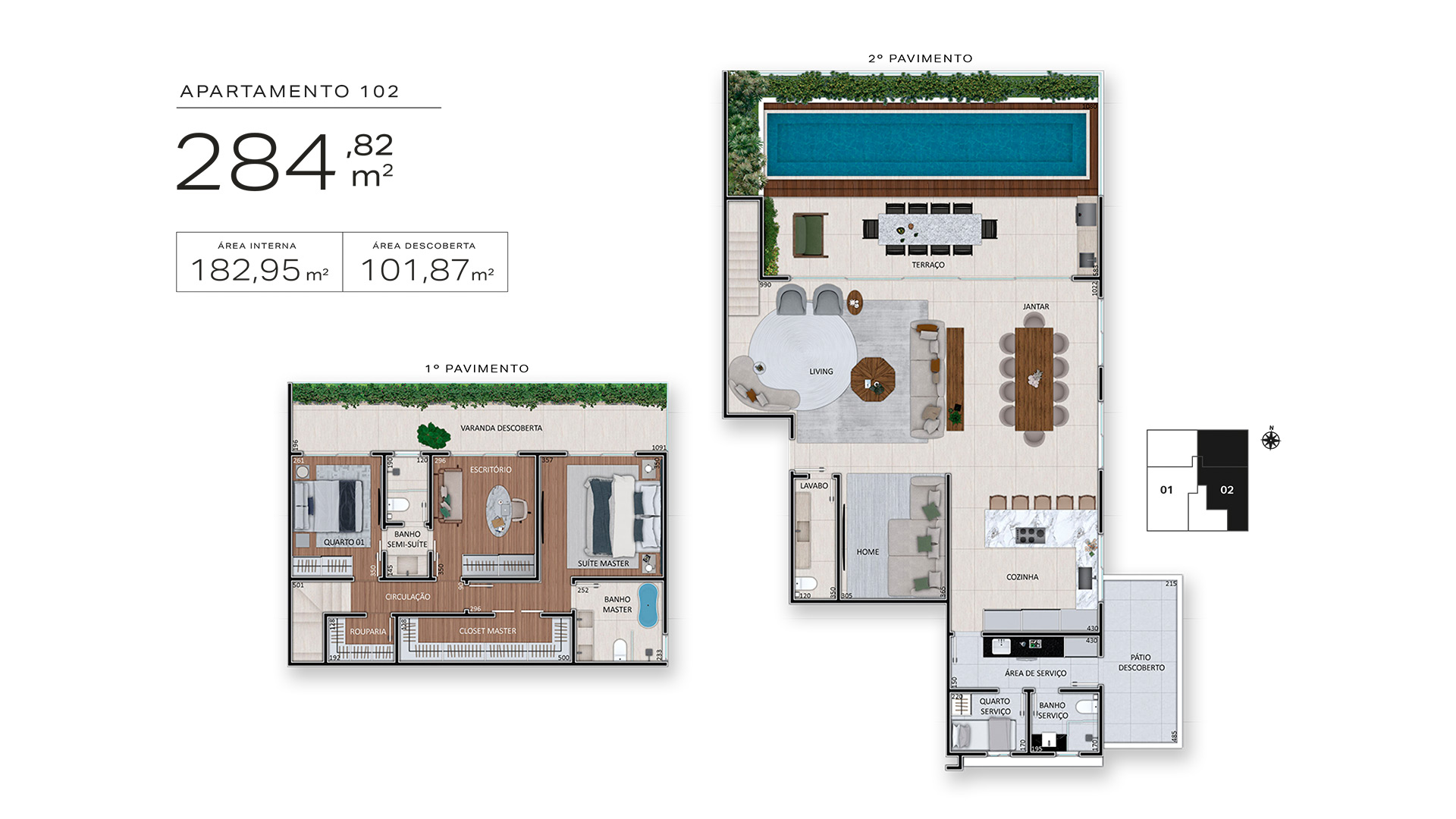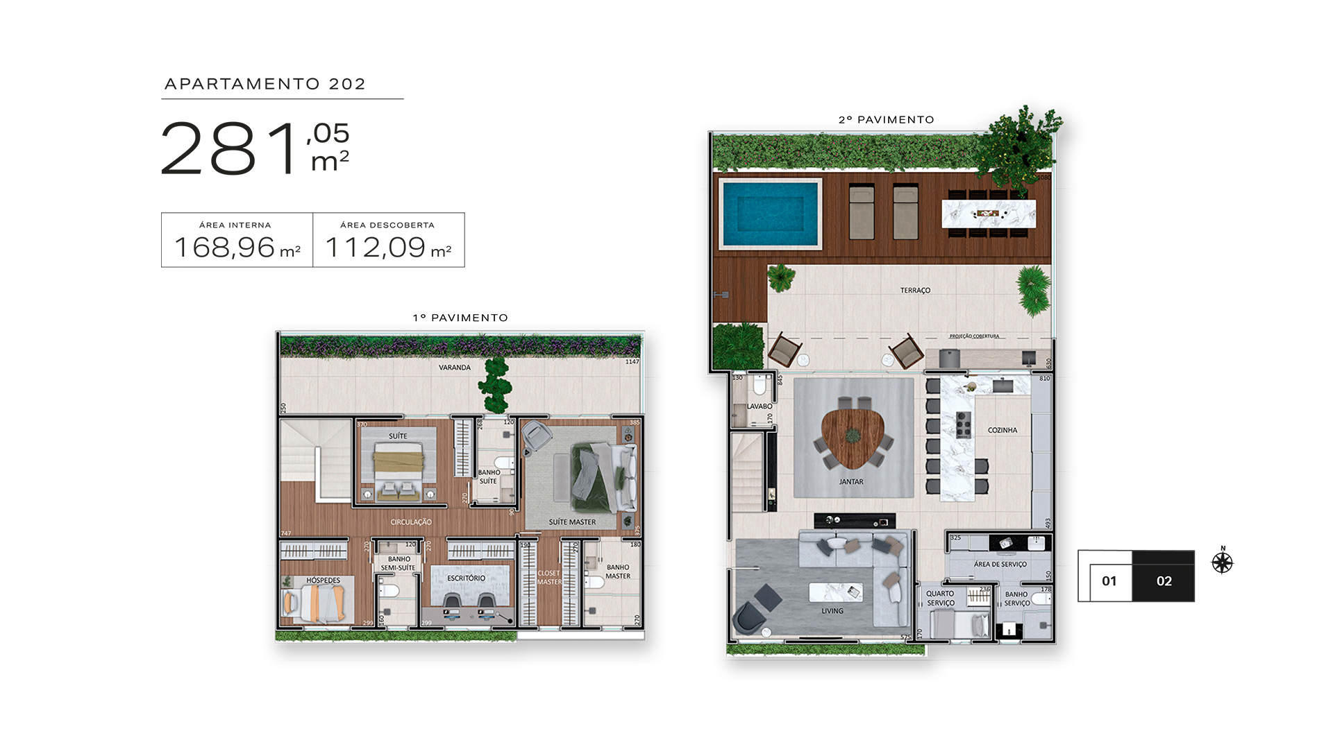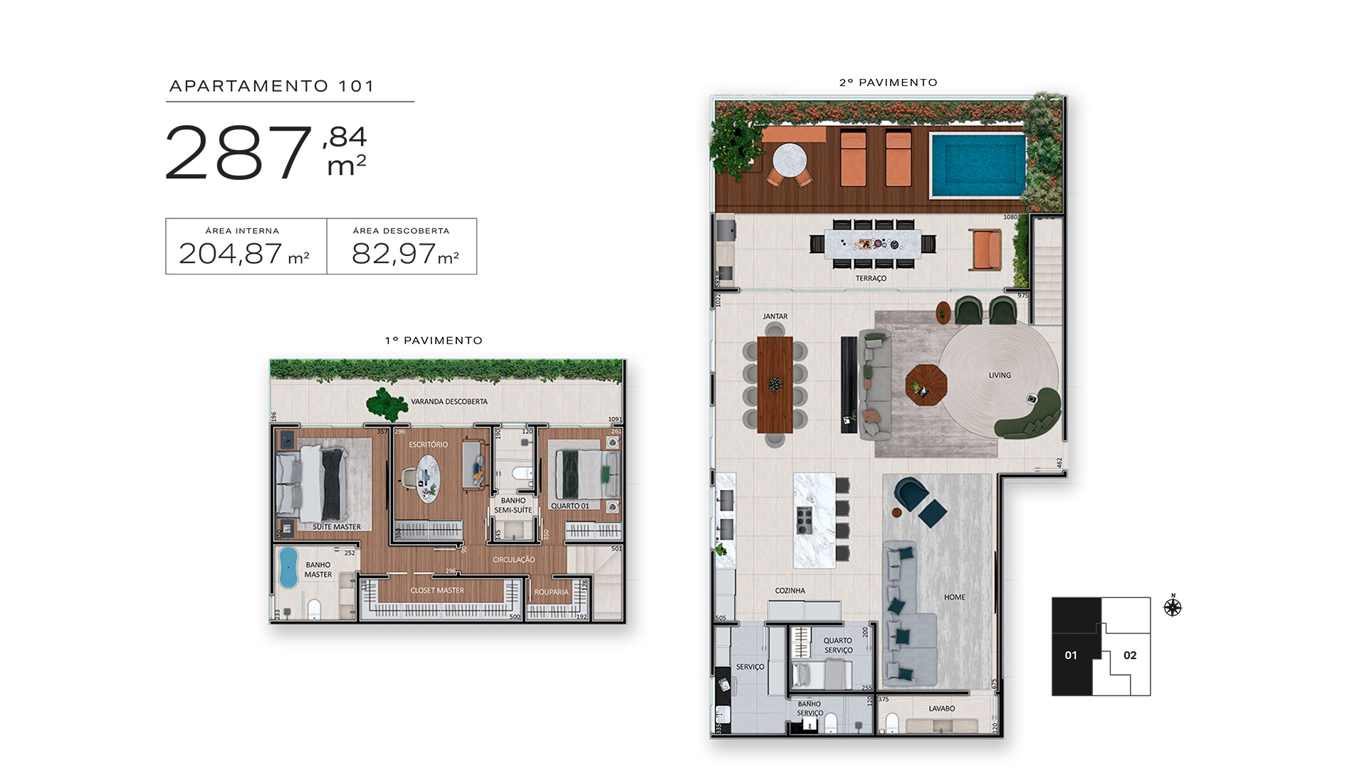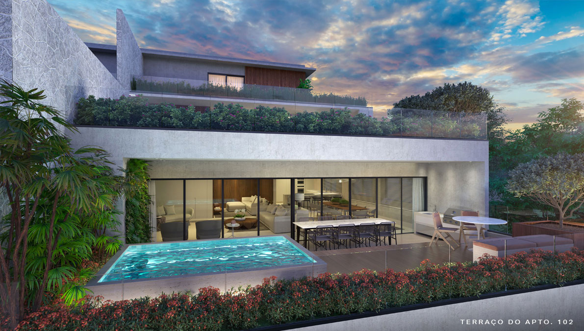 Com apenas quatro casas suspensas, todas duplex com quase 300 m², varanda, terraço e lazer privativo, aqui você encontrará a legítima sensação